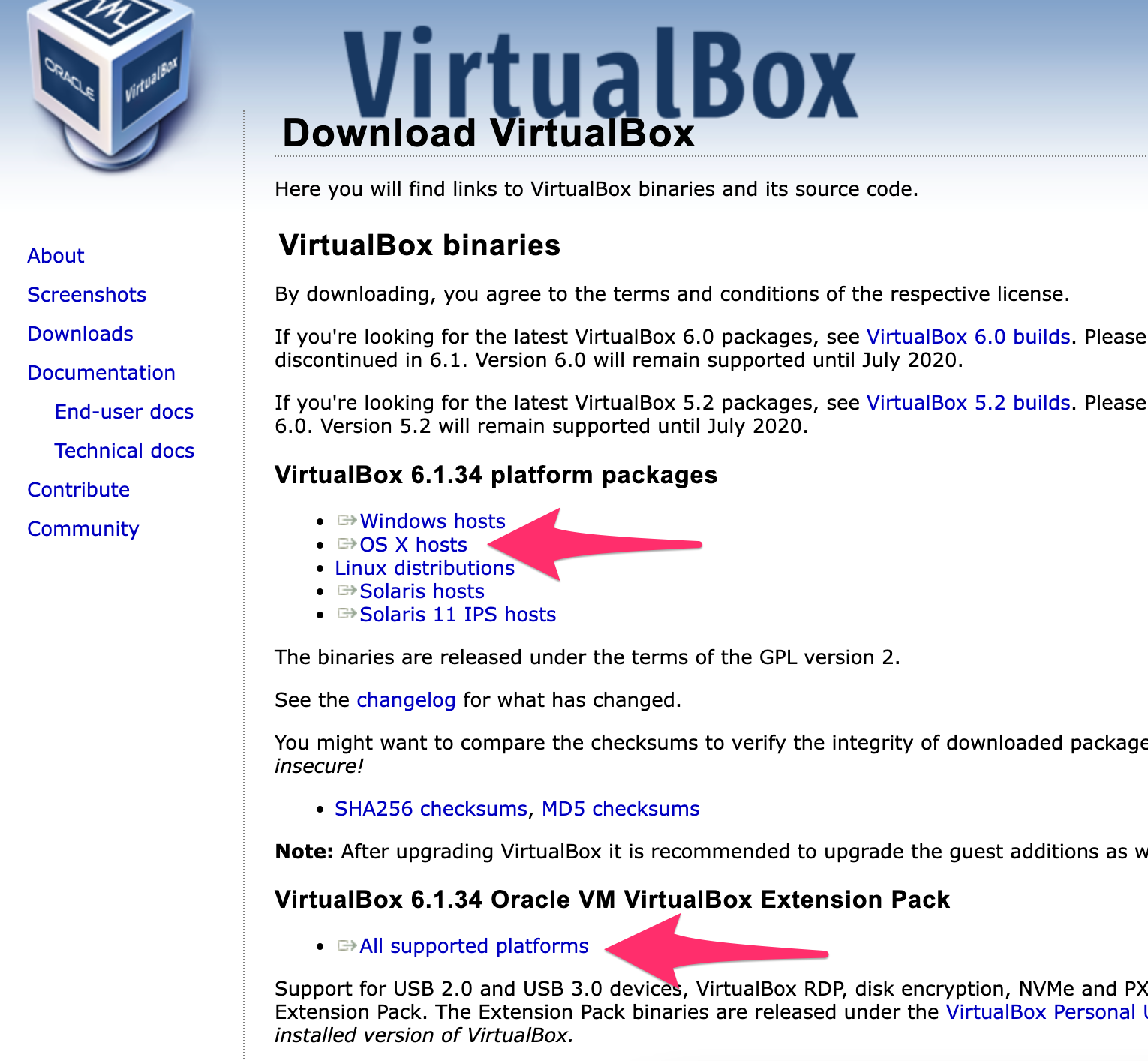 .dmgfile. This is the main hypervisor software and user interface. - Extension Pack - click on "All supported platforms" to download a