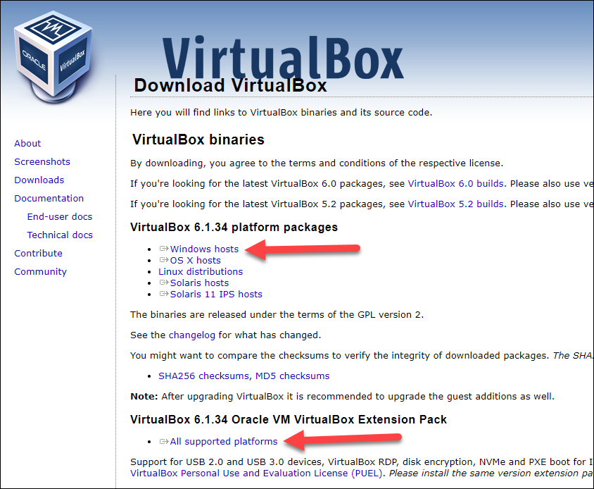 .exefile. This is the main hypervisor software and user interface. - Extension Pack - click on "All supported platforms" to download a